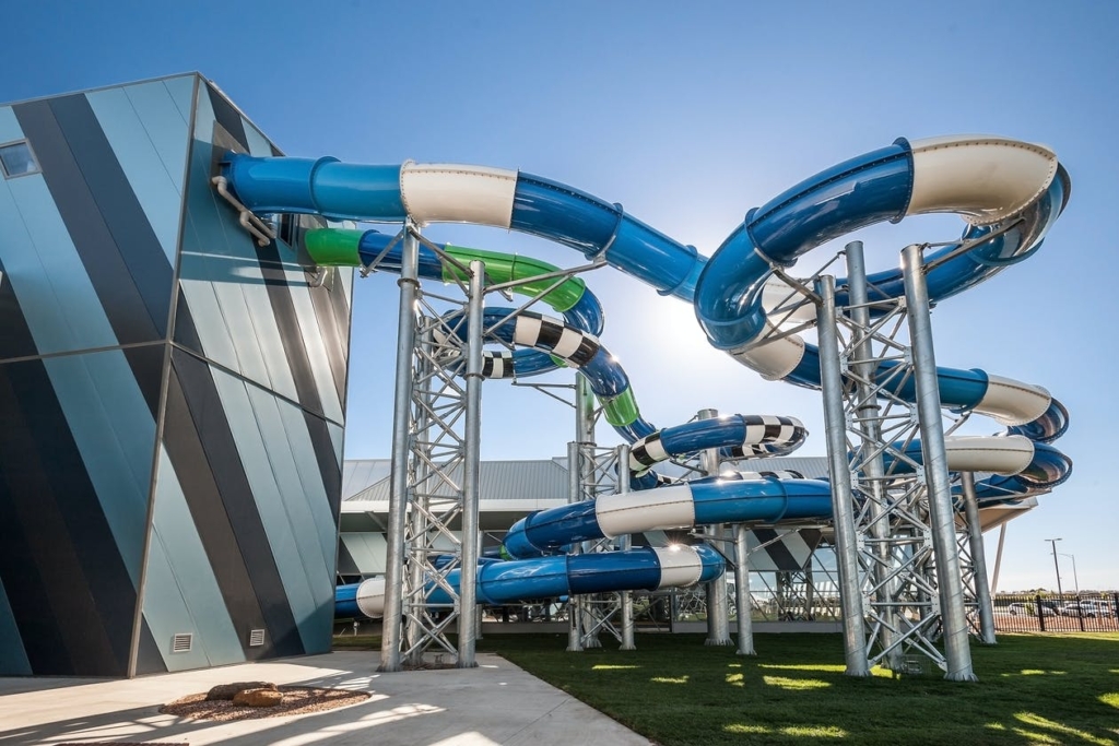 Craigieburn Aquatic Centre was a complex build, the first to move from an insulated panel roof to a built up system, whilst still maintaining the requirement for an airtight envelope. On top of that, considerations needed to be made to cater for condensation control as well as thermal and acoustic requirements. The wall cladding featured metallic Kingspan panels on angle, even to the 14m high slide tower. Built through the middle of one of the worst winters in living history, the project got off to a wet start however the end result is magnificent and enjoyed by almost 600,000 visitors each year.